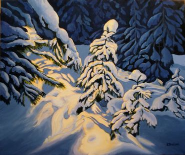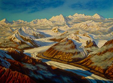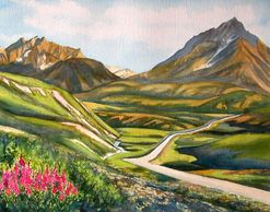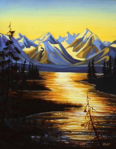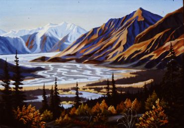 The majesty of Yukon's Kluane region and her magnificent home was the inspiration for most of Libby's work. The magnificent panoramic view she and her family enjoyed from their log home and the ever changing light kept her always inspired. It was her hope that her paintings reflected her passion for the awesome scenery, from mountain and glacier grandeur to lake, forest and wildflower splendour. She is deeply missed but her work lives on in her paintings and prints.